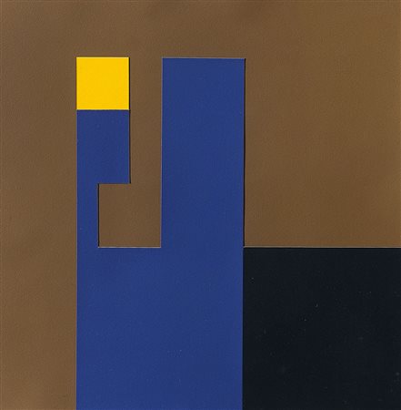 collage su carta cm. 30x30, firma, titolo, anno, tecnica, etichetta della Galleria Valente Arte Contemporanea e timbri della Galerie Am See (Zurigo) e della Dogana di Ponte Chiasso al retro, timbro e firma per autenticità e provenienza della Galleriauno by Goriziarte su foto.