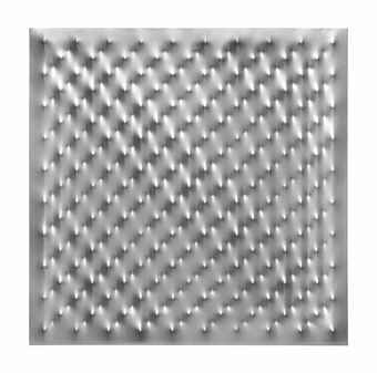 ENRICO CASTELLANI (N. 1930) Superficie argento firme, titolo e data...