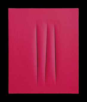 LUCIO FONTANA (1899-1968) Concetto spaziale, Attese firma, titolo e iscrizione l. Fontana Concetto spaziale ATTESE debbo aspettare la Nanda che non arriva mai (sul retro) idropittura su tela cm 55,5x46 Eseguito nel 1965 P R O V E N I E N Z A : Galleria Sperone, Torino Londra, asta Sotheby’s, 24 giugno 1993, lotto 46 Galleria La Bertesca, Genova Galleria Rotta, Genova ivi acquisito dalla famiglia dell’attuale proprietario nella seconda metà degli anni Novanta E S P O S I Z I O N I : Genova, Galleria La Bertesca, Situazione ‘67, dicembre 1967 B I B L I O G R A F I A : E. Crispolti, Lucio Fontana, catalogue raisonné des peintures, sculptures et environnements spatiaux, Bruxelles 1974, vol. II, p. 164 (illustrato) E. Crispolti, Fontana. Catalogo generale, Milano 1986, vol. II, p. 578, n. 65 T 100 (illustrato) E. Crispolti, Lucio Fontana. Catalogo ragionato di sculture, dipinti, ambientazioni, Milano 2006, vol. II, p. 764, n. 65 T 100 (illustrato).