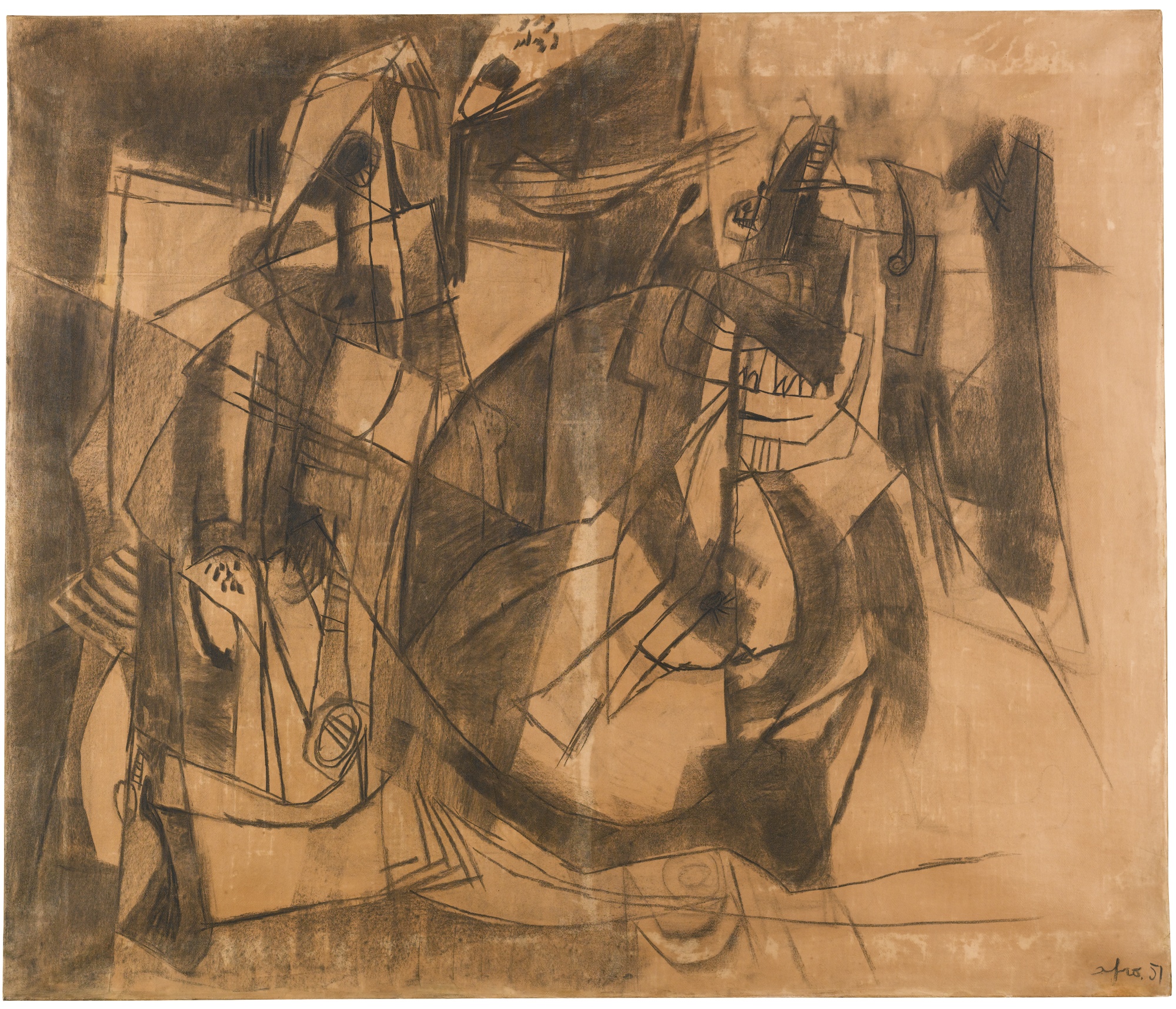 Afro 1912 - 1976 STUDIO PER 'LES YEUX LES MATRICES' SIGNED AND DATED 51; SIGNED, TITLED AND DATED 1951 ON THE STRETCHER, CHALCK ON PAPER LAID ON CANVAS firmato e datato 51; firmato, intitolato e datato 1951 sul telaio carboncino su carta applicata su tela cm 120x142 READ CONDITION REPORT AUTHENTICATION Opera archiviata presso l'Archivio Afro, Roma, con il n. 51B119 L'opera è accompagnata da certificato su fotografia rilasciato dall'Archivio Afro, Roma PROVENANCE Galleria Editalia, Roma Galleria Arte 92, Milano Ivi acquistato dall'attuale proprietario CATALOGUE NOTE L'opera è accompagnata da attestato di libera circolazione