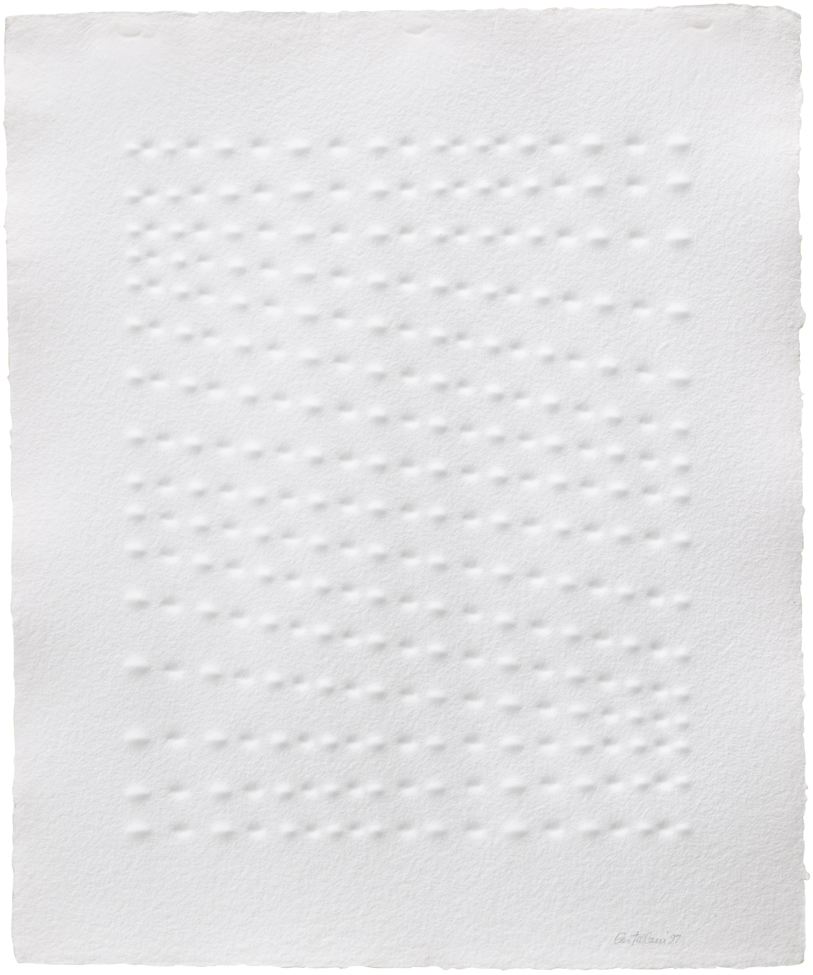 Enrico Castellani N. 1930 SENZA TITOLO SIGNED AND DATED 97, SHAPED PAPER firmato e datato 97 carta estroflessa cm 61x52 READ CONDITION REPORT AUTHENTICATION Opera registrata presso l'Archivio Castellani, Milano, con il n. 97-023-C L'opera è accompagnata da certificato su fotografia rilasciato dall'Archivio Castellani, Milano PROVENANCE Magi Art, Milano