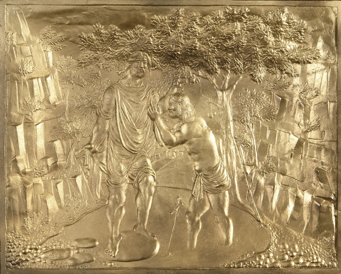 TOT AMERIGO (Fehérvárcsurgó (Ungheria) 1909-1984 Roma) - "Il Battesimo di Cristo", 39,5x49 bassorilievo in bronzo. Opera firmata in basso a sinistra