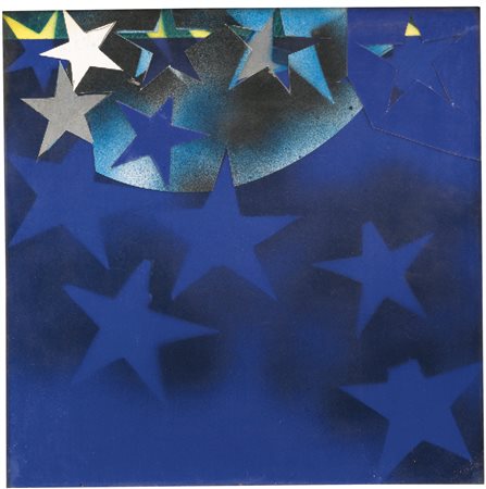 Mario Schifano 1934 - 1998 TUTTE STELLE SIGNED, COLLAGE AND VARNISH ON CARDBOARD. EXECUTED IN 1967 firmato collage e vernice nitro su cartoncino cm 40x40 Eseguito nel 1967 READ CONDITION REPORT AUTHENTICATION Opera registrata presso l'Archivio Mario Schifano, Roma, con il n. 02862150214 PROVENANCE Collezione Carlo Giani, Milano Collezione Laura Ravasi, Roma LITERATURE AA. VV., Corso di pittura e disegno, Milano 1995, illustrato in copertina, p. 20, n. 86, illustrato AA. VV., Schifano 1964-1970. Dal Paesaggio alla TV, Milano 2006, p. 161, illustrato a colori Università degli Studi di Genova, Mario Schifano. Archivio delle opere, Genova 2007, vol. IV, p. 49, n. 67/031, illustrato Luca Massimo Barbero, Schifano. Tuttestelle, Porto Cervo 2009,illustrato in copertina, p. 36, illustrato