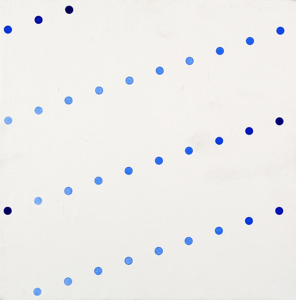 ANTONIO SCACCABAROZZI 1936 - 2008 3 presente cm. 3 ->/1 / 2 , 1979 Acrilico su tela, cm. 30 x 30 Firmato e datato sul retro Prov. Collezione Privata