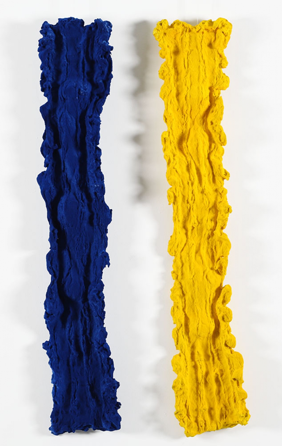 PINO PINELLI 1938 Pittura BL G, 1993 Pittura su 2 elementi, cm. 108 x 18 ( cadauno) Firmato e datato sul retro Autentica dell’artista su fotografia Prov. Collezione Privata