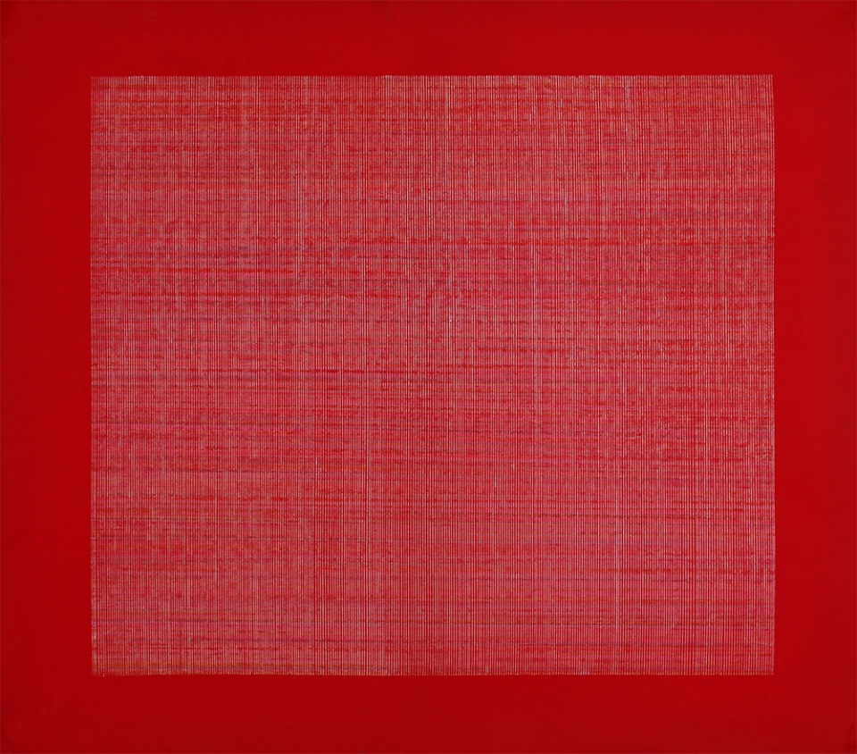 ALBERTO BARDI 1918 - 1984 Sul rosso, 1974 Pastello a cera e tempera su tela,...