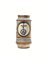La forma dell’albarello è ancora vicina alle fogge quattrocentesche, che trovano riscontro in opere unite a decori alla “damaschina” o comunque d’influenza orientale come l’albarello del Victoria and Albert Museum di Londra (1). L’influenza orientale nel nostro esemplare è rappresentata dal decoro alla “penna di paona”, interpretato dalle manifatture montelupine in maniera rapida e corriva, più accorta nella stesura coloristica rispetto all’impianto disegnativo.