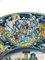 Maiolica dipinta in policromia con giallo, arancio, blu, verde, bianco, bruno di manganese.