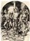 Una fascia decorata a perline separa il cavetto dalla tesa, che mostra un complesso ornato in cui quattro riserve di forma arrotondata si alternano a un fitto motivo a grottesche che riempie interamente le restanti campiture. La medesima impostazione decorativa è poi ripetuta per quattro volte: un’erma femminile, sostenuta da due sfingi, porta sul capo una cornucopia su cui è appollaiato un pavone; ai lati dell’erma, due putti sorreggono un tendaggio a incorniciare la scena; le restanti campiture sono riempite in giallo, rosso e blu mentre piccoli decori fogliati e uccelli volanti le animano. All’interno delle riserve sono descritti quattro momenti della passione di Cristo: la visita da Erode con la folla che sbeffeggia il Cristo, Ponzio Pilato, la fustigazione e Gesù che porta la croce. Tutte le scene mostrano una grande attenzione narrativa con aggiunta di particolari miniaturistici nelle architetture, nelle vesti, nelle armi e in altro ancora.