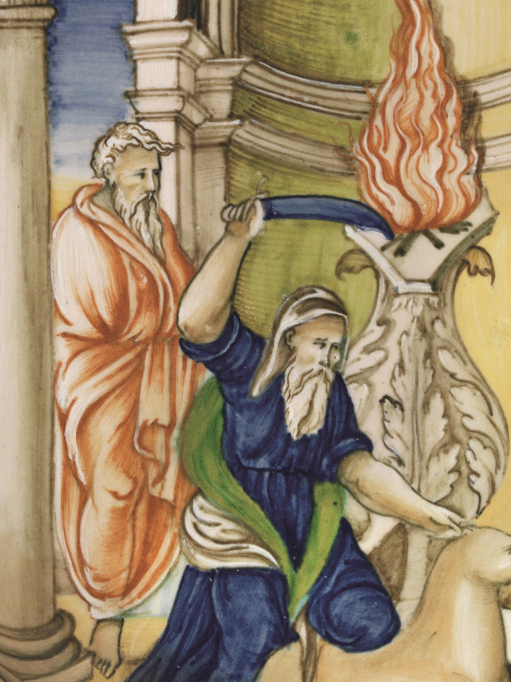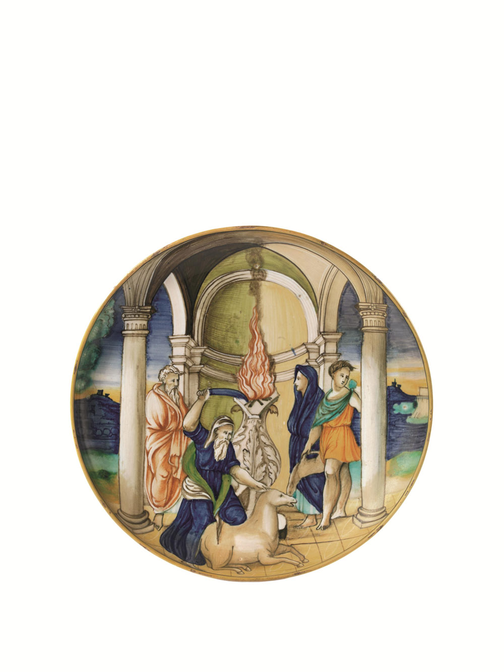 Una scena di sacrificio, invero più affollata, attribuita alla bottega di Guido Durantino, è conservata al Museo di Berlino (4) e mostra una figura di vecchio che sacrifica un capro davanti ad un altare, in presenza di un sacerdote con il capo velato e davanti a numerosi personaggi: i modi stilistici sono vicini a quelli della cerchia di Nicola da Urbino.