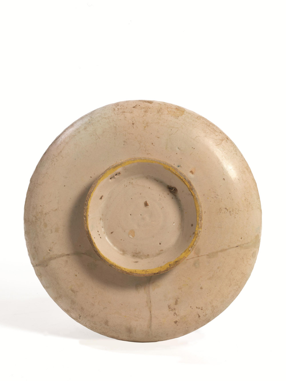 Maiolica dipinta in policromia con azzurro, verde ramina, bruno di manganese, giallo ocra, blu di cobaltoe bianco di stagno.