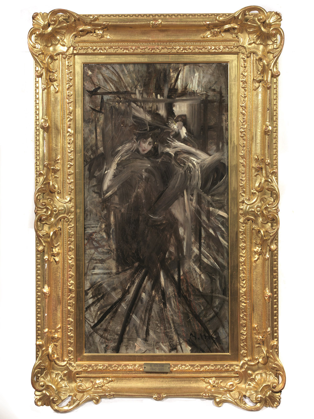 Di Giovanni Boldini si è parlato moltissimo, ma proprio con opere come questa che viene presentata, ci si rende conto della raffinatezza dell'artista di Ferrara, pittore unico, che riesce, pur mostrando la classicità del soggetto, ad essere moderno, anzi modernissimo, e con quelle sue pennellate veloci e guizzanti dona ai suoi quadri ritmo e movimento. Il nostro dipinto è caratteristico del momento centrale della plenitudo potestatis di Boldini che va dal 1892 all'inizio della prima guerra mondiale, quando l'artista diviene il più ricercato e fra i più pagati ritrattisti della Belle Epoque .