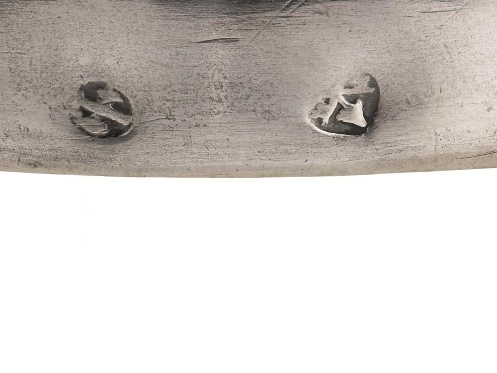 The mark on the oil lamp, which resembles a Gothic eagle, is the one used by the silversmith from 1765 to 1810. From 1811 to 1822 the mark will become A96C in a lozenge.