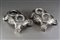 Coppia di saliere con tre vaschette in vetro e basi in argento, sbalzate e...