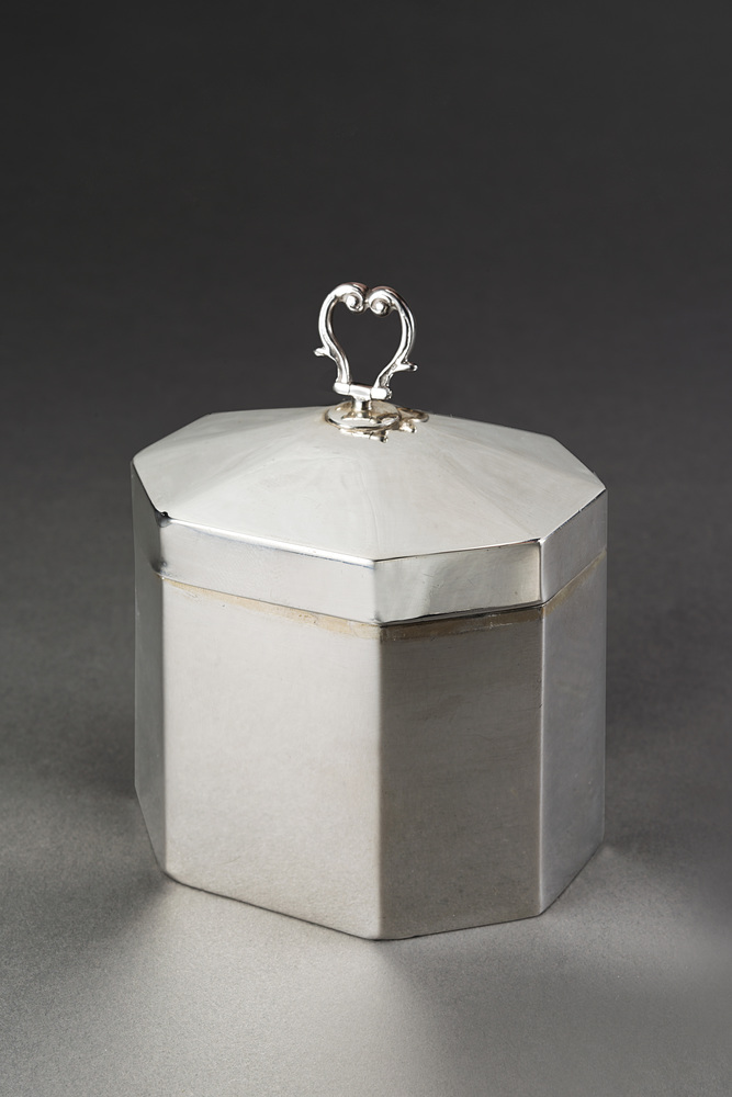 Lotto 97 | Tea-caddy in argento di forma ottagonale con presa del coperchio traforata a...