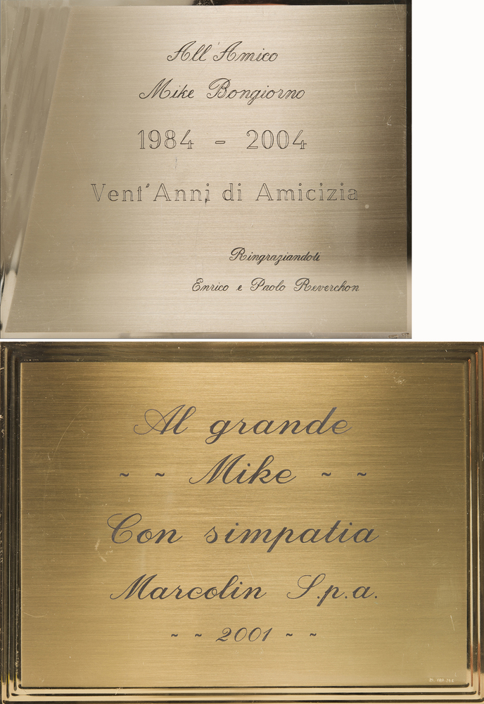 Lotto 249 | Lotto composto da due targhe commemorative dedicate a Mike una in argento ed...