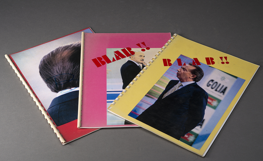Lotto composto da tre raccoglitori con foto a fumetti sarcastici "Blab!!"...