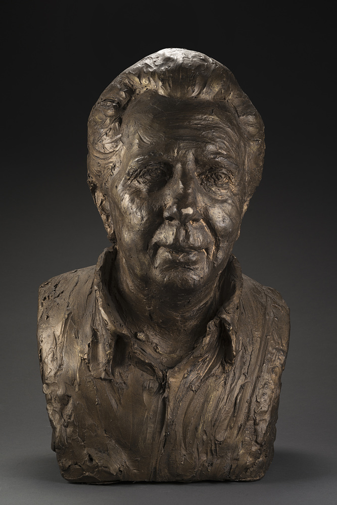 "Mike Bongiorno" mezzo busto patinato a finto bronzo (h cm 50) firmato sul fianco