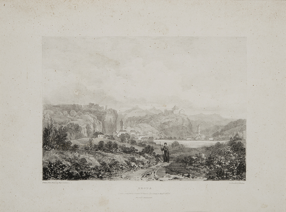 Incisione del sec. XIX raffigurante uno scorcio di Arona (cm 27x36)