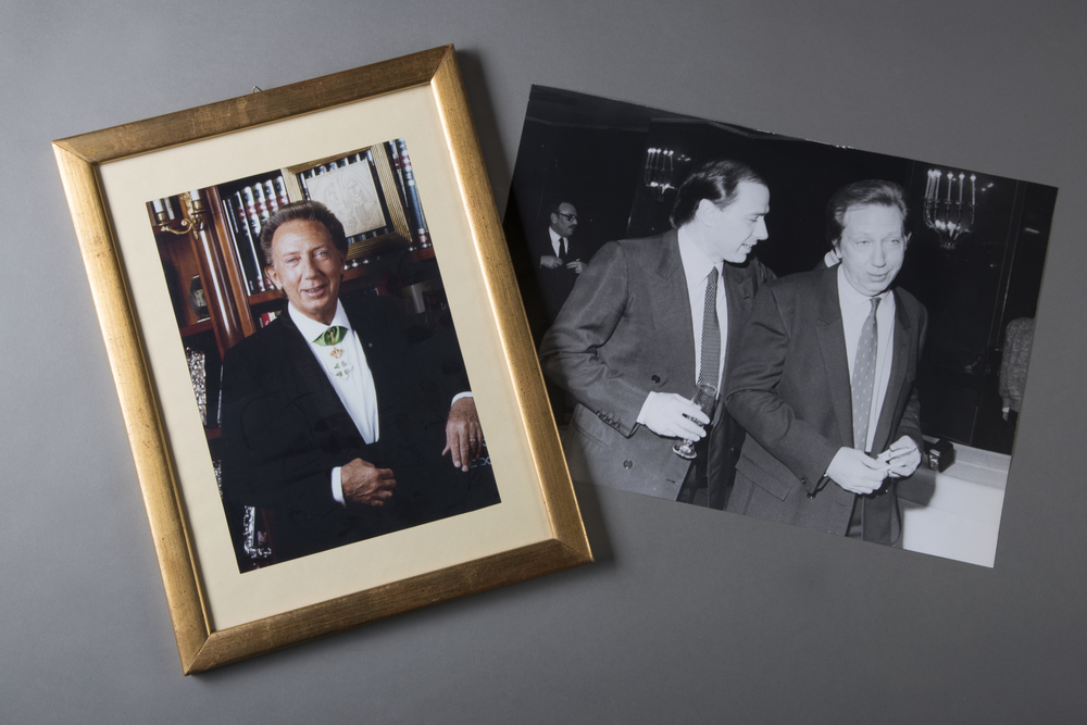 Lotto composto da due fotografie raffiguranti Mike: una con investitura dei Cavalieri di Gran Croce dell'Ordine di San Maurizio e Lazzaro, una in bianco e nero con Mike e Silvio Berlusconi ad immortalare l'inizio della collaborazione. Anno 1981.
