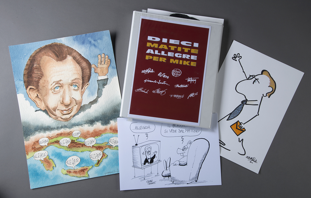 Raccoglitore contenente varie caricature di Mike Bongiorno "Dieci matite allegre per Mike", eseguite da vari artisti.