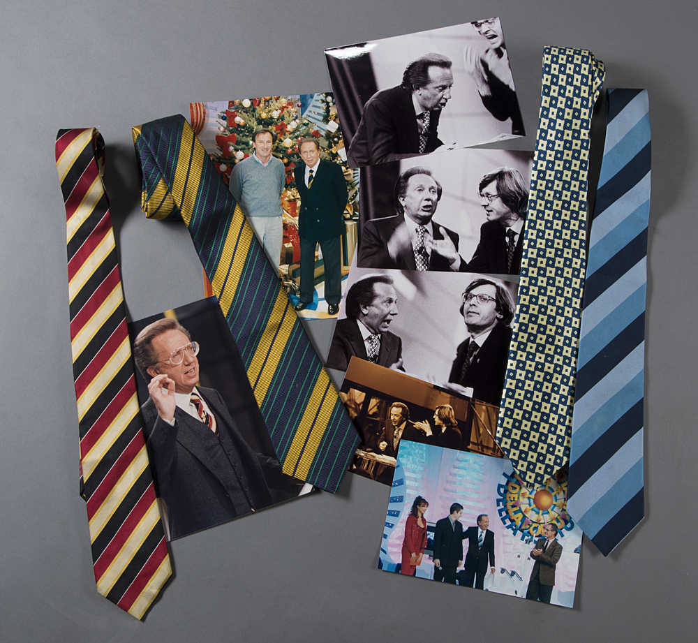 Lotto di quattro cravatte di diversi decori e colori Bardelli Milano corredate da foto di Mike in varie trasmissioni televisive di cui una indossata durante la lite con Vittorio Sgarbi nella strasmissione TeleMike