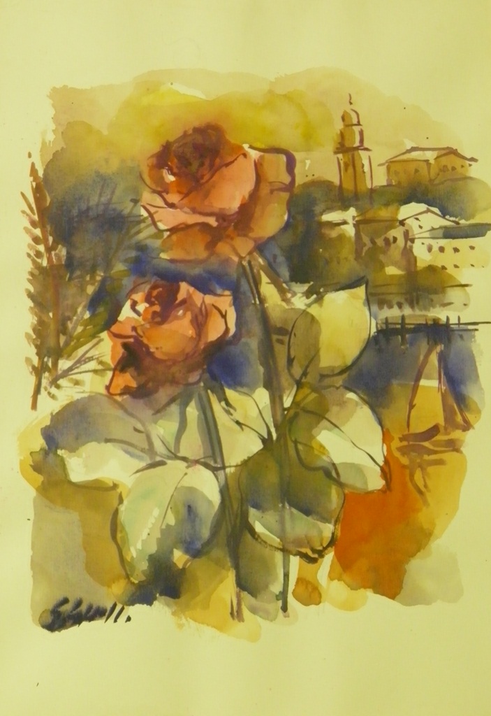 CAPPELLO EMANUELE 1936 SENZA TITOLO ACQUARELLO SU CARTA cm 50 x 35 Firma in basso a sinistra