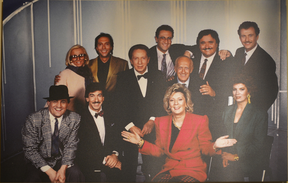Mike con alcuni protagonisti delle trasmissioni di Canale 5 degli anni '80