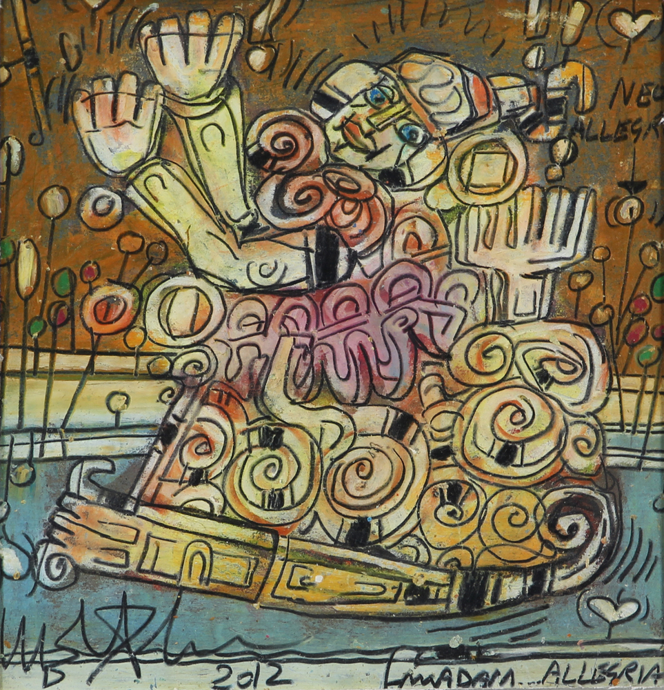 Martino Delego, Allegria, 2012, tecnica mista su carta, cm. 20x19, firmata e datata in basso a sinistra, intitolata in basso a destra