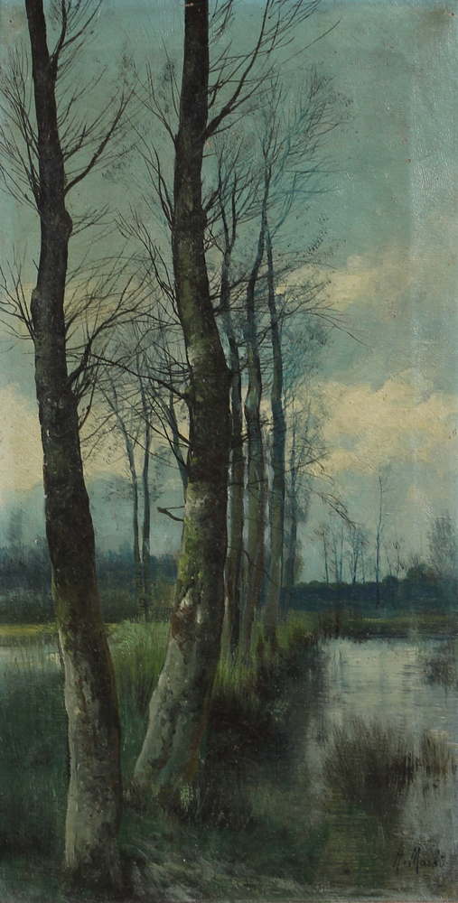 Henry Markà, Paesaggio, olio su tela, cm. 48,5x25, firmato in basso a destra