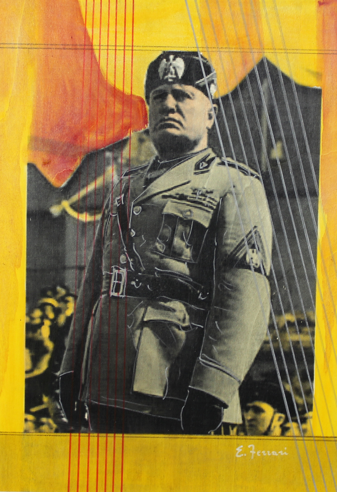 Enzo Ferrari, Il Duce, tecnica mista su tavola, cm. 70x50, firmata in basso a...