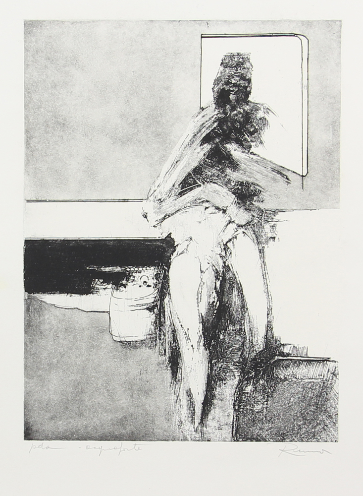 Ignoto, Senza titolo, acquaforte su carta, cm. 70x50 (lastra cm. 38,5x29), es. prova d'artista, firma indecifrabile in basso a destra, senza cornice