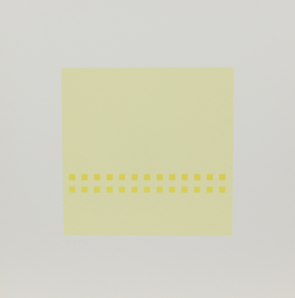 Antonio Calderara, Quadrato, 1974, serigrafia su carta, cm. 49,5x49,5, es. 44/99, siglata in basso a sinistra, timbro “La Nuova Foglio” di Pollenza di Macerata in basso a destra, senza cornice