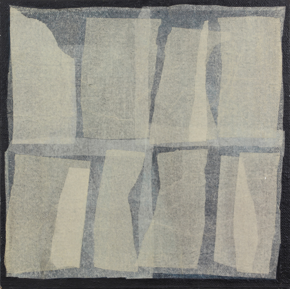Ignazio Moncada, Senza titolo, 1977, tecnica mista e collage su tela, cm. 50x50, firmata e datata al retro del telaio, firmata e datata al retro della tela, senza cornice