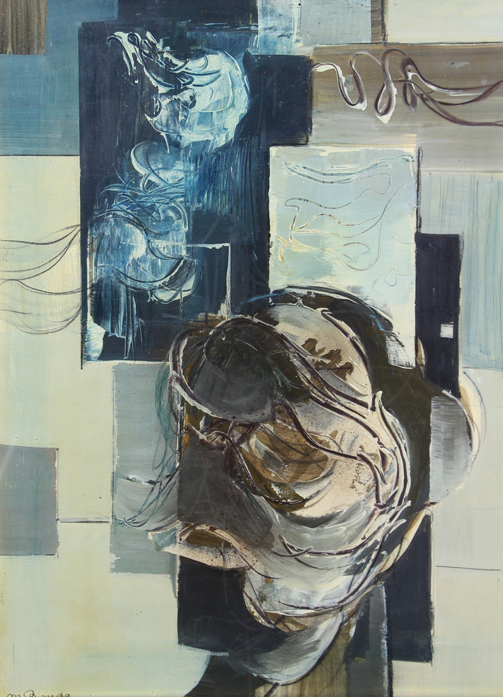 Mario Bionda, Senza titolo, tecnica mista su cartoncino applicato su tela, cm.70x50, firmata in basso a sinistra e al retro