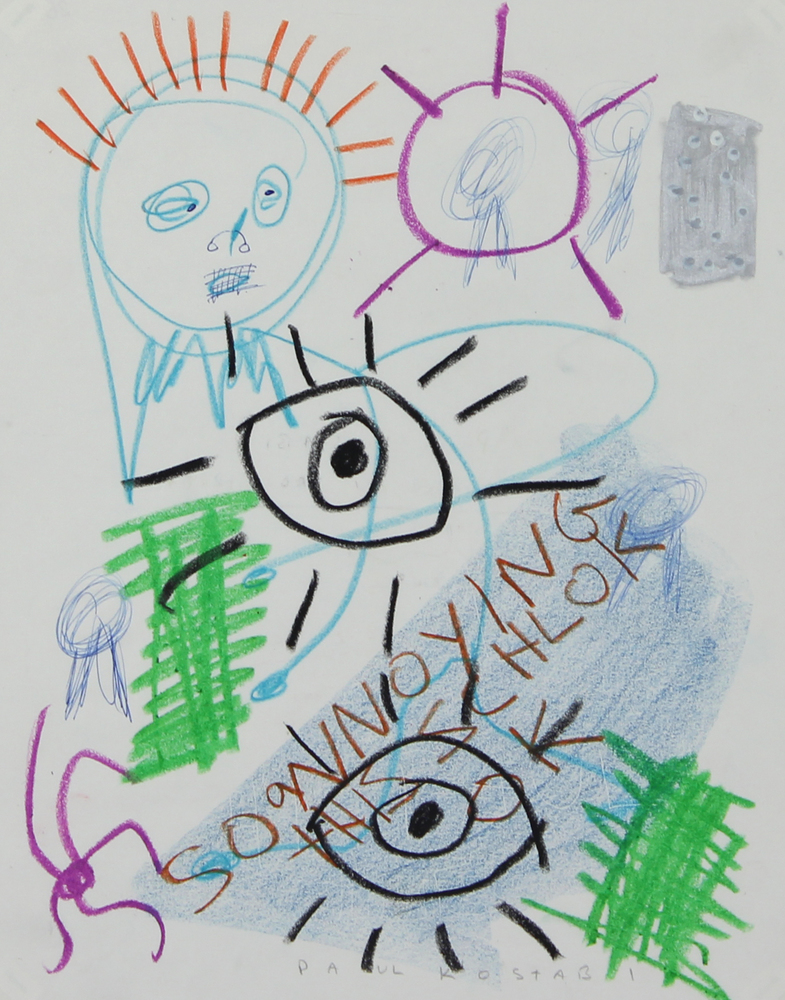 Paul Kostabi, Murder on Third Street, 2002, tecnica mista su carta, cm. 35,5x28, firmata in basso al centro, opera pubblicata sul catalogo della mostra “Paul Kostabi” tenutasi presso la Saletta d'Arte Viviani di Pisa dal 1 al 31 dicembre 2007 a pag. 19