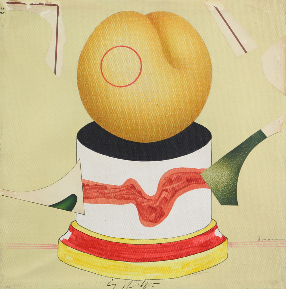 Vanni Viviani - Sergio D'Angelo, Personaggio con Monocolo, collage e olio su tela, cm. 30x30, firmato da Vanni Viviani in basso a destra e da Sergio D'Angelo in basso in basso al centro, firmato da Vanni Viviani e intitolato al retro, certificato di autenticità e di archiviazione su fotografia, senza cornice