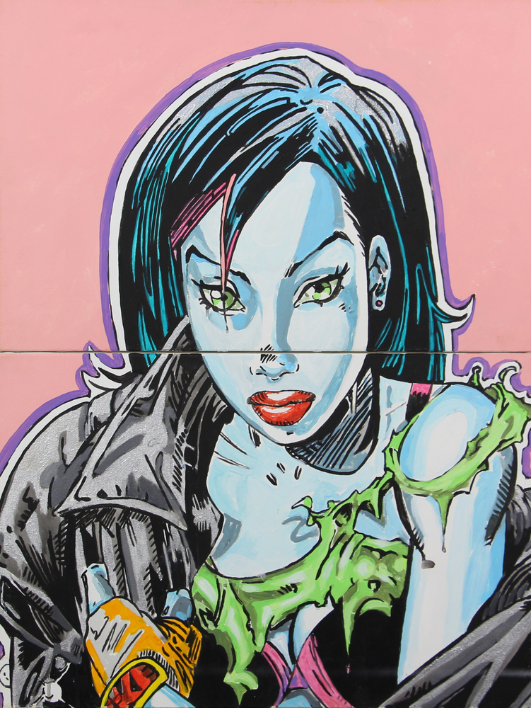 Esteban Villalta Marzi, Senza titolo, 2006, smalto su tela, cm. 80x60, firmato e datato sul lato sinistro, l'opera à composta da 2 tele di cm. 40x80 ciascuna, senza cornice