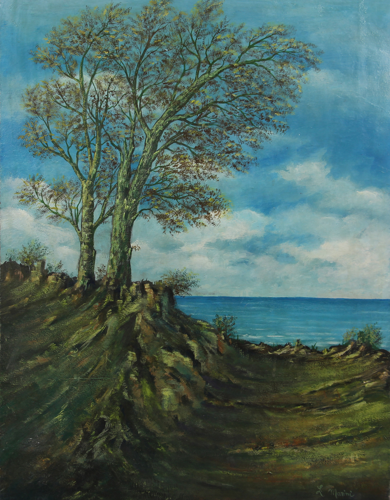 Ignoto, Veduta Marina, olio su tavola, cm. 80x60, firmato "L. Marini" in...