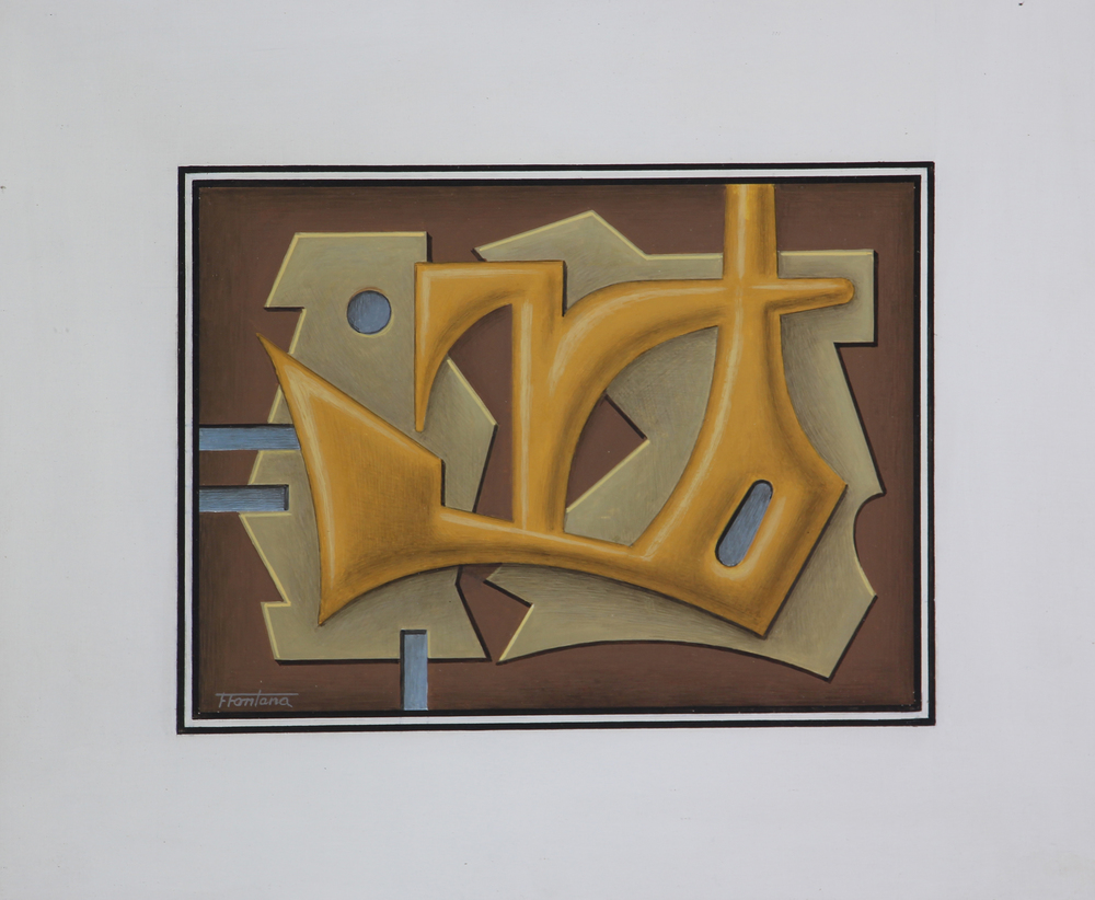 Lotto 313 | Ignoto, Senza titolo, tecnica mista su cartoncino, cm. 25x30, firmato "F....