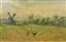 Egidio Riva, Paesaggio con galline, olio su tela applicata su masonite, cm....