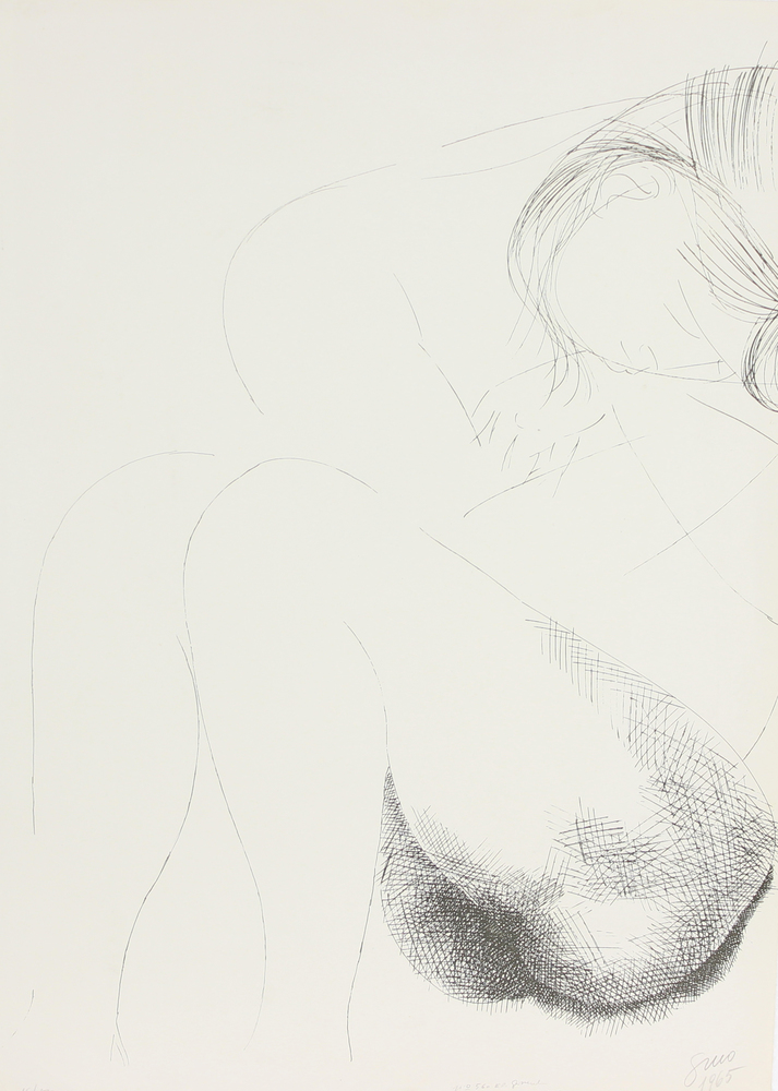 Emilio Greco, Nudo femminile, 1965, litografia su carta, cm. 68x48, es. 16/180, firmata e datata in basso a destra, segni di piegature ai margini e piccolo strappo al mergine in basso, senza cornice