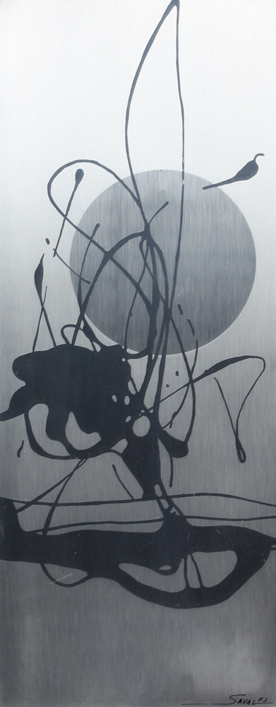 Ignoto, Senza titolo, 1973, incisione su lasta metallica, cm. 50x20, firmata "Saval" e datata in basso a destra