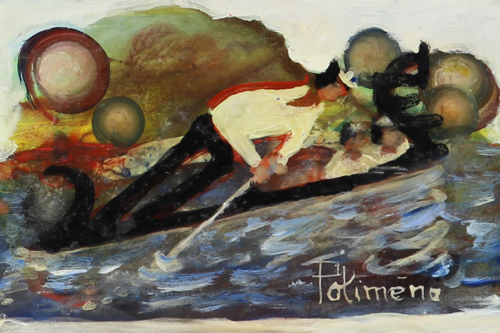 Polimenà, Gondole a Venezia, olio su carta, cm. 10x15, firmato in basso a destra e al retro, titolo e timbro dell'artista al retro, l'opera à accompagnata dal certificato di provenienza, senza cornice