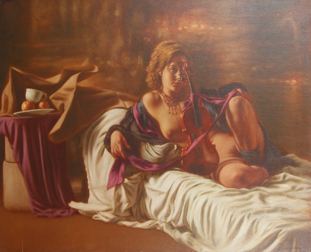 Antonio Napolitano, A volte era il silenzio..., 2000, olio su tela, cm. 80x100, firmato in basso a destra, firmato e intitolato al retro, etichetta e timbri dell'“Archivio delle Opere di Antonio Napoletano” al retro, certificato di autenticita dell'Archivio delle Opere di Antonio Napoletano con firma dell'artista su fotografia, senza cornice