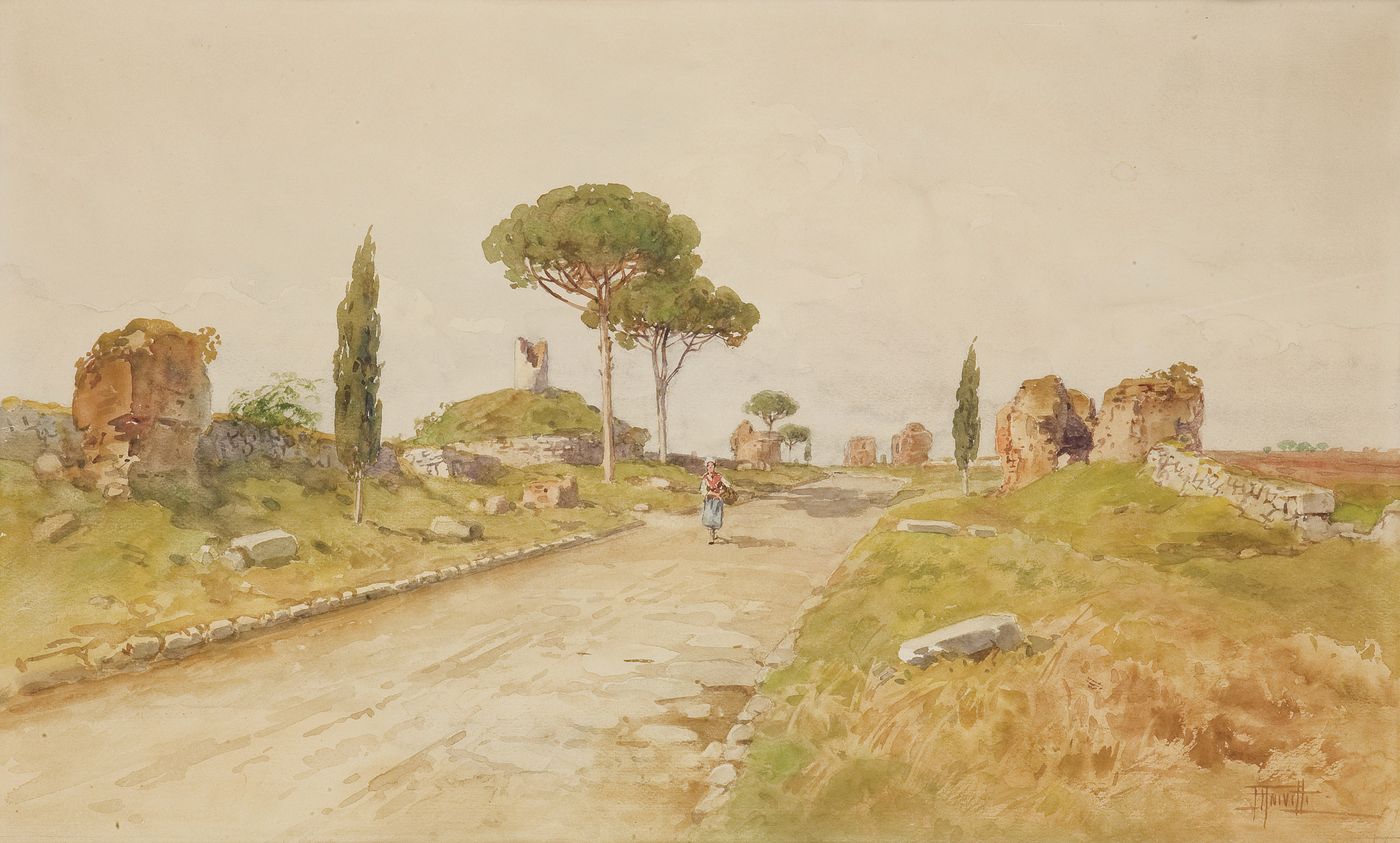 Lotto 53 | ANIVITTI FILIPPO (Roma 1876 – 1955) - "La via Appia", 44x73 acquerello su...