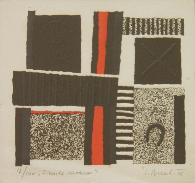 SPACAL FIENILE CARSICO, 1968 LITOGRAFIA cm 24x25 Firma e anno in basso a destra.Titolo e numerazione 17/100 in basso a sinistra