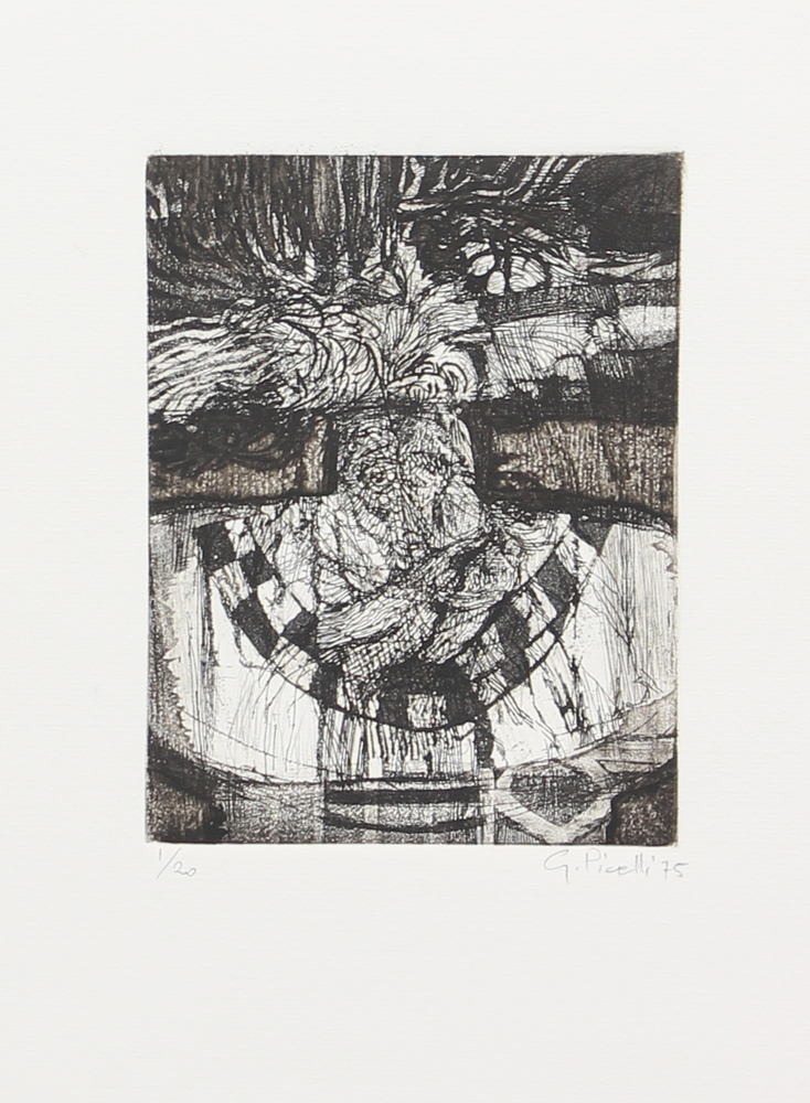 Giulio Picelli, Senza titolo, 1975, incisione su carta, cm. 51x35 (lastra cm. 15,5x11,5), es. 1/20, firmata e datata in basso a destra, senza cornice
