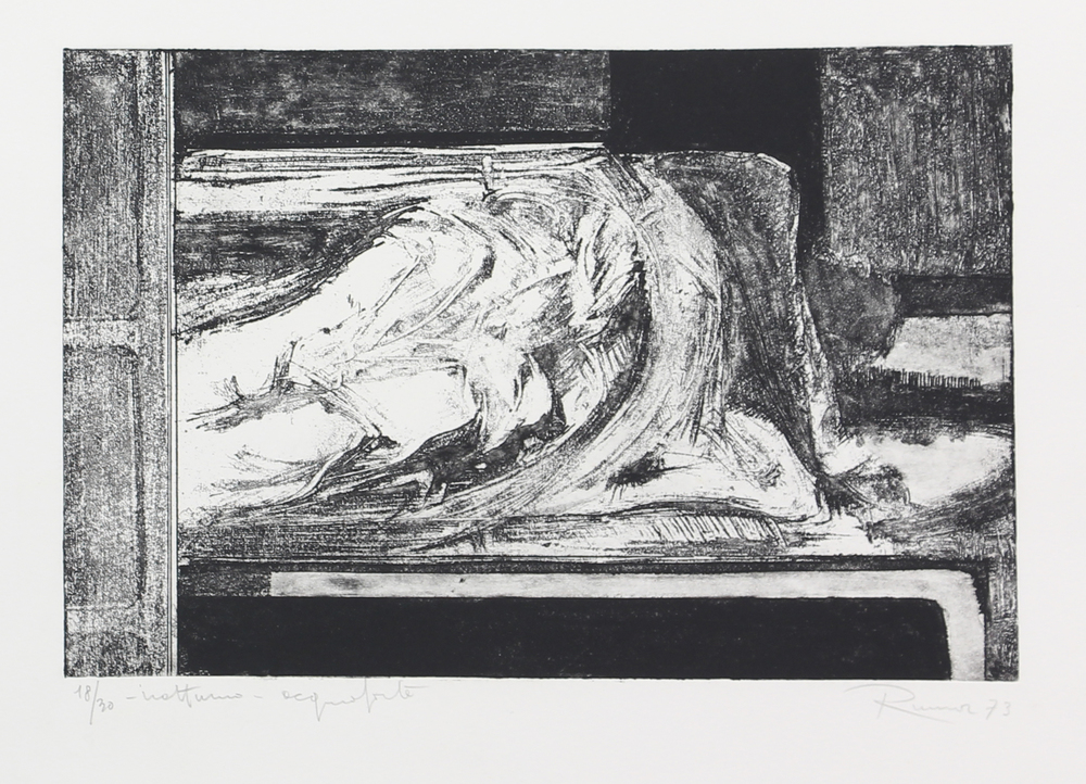 Ignoto, Notturno, 1973, acquaforte su carta, cm. 50x50 (lastra cm....