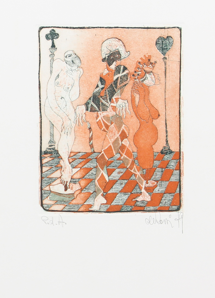 Ignoto, Senza titolo, 1979, incisione su carta, cm. 50x35 (lastra cm. 18x14), es. prova d'artista, firmata "De Rossi" e datata in basso a destra, senza cornice